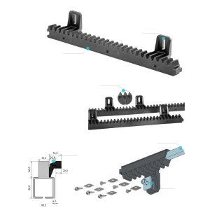 Łączenie listwy w nieskończoność na wczep skośny tzw. „jaskółczy ogon”.W komplecie wkręt 6,3 x 25 + podkładka prostokątna, lub możliwość zamiany na śrubę M6x12 z podkładką prostokątn. Szybkie mocowanie listwy wkrętem samowiercącym 6,3 x 25 lub śrubą M6 x 12 i specjalną podkładką. % Zalety:- bardzo wytrzymała konstrukcja listwy dzięki zastosowaniu materiału Poliamid z rdzeniem metalowym,- cicha, bezszelestna praca bramy podczas otwierania,- bardzo szybki montaż,- nieścieralność zębatki w napędzie bramowym,- brak korozji po latach użytkowania