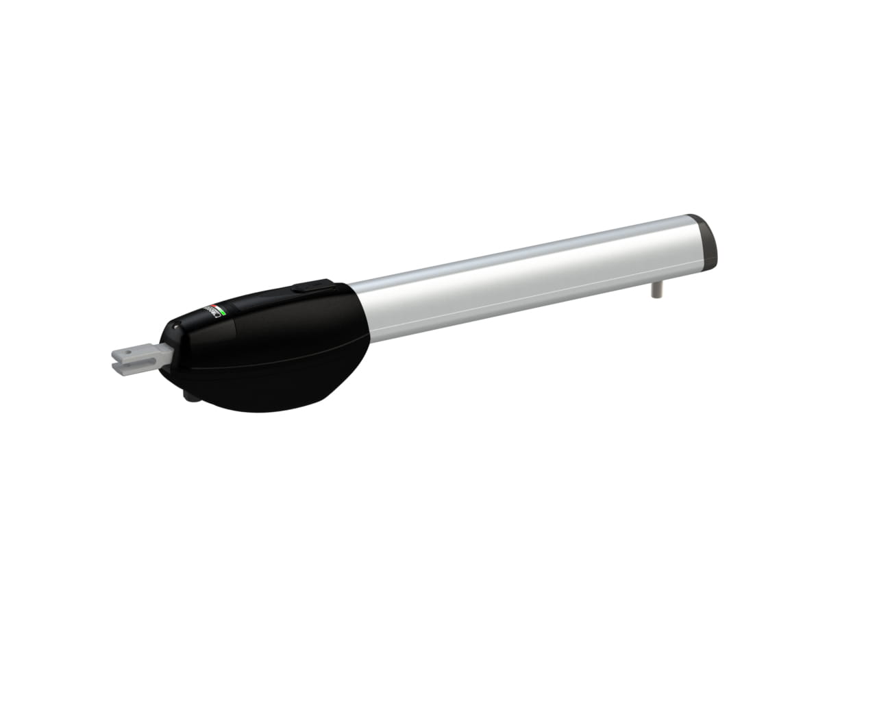 Napęd z silnikiem bezszczotkowym 24 V, do pracy bardzo intensywnej, do bram rozwiernych o max długości skrzydła 2,8 m z enkoderem cyfrowym, centralą B70/2DC oraz radioodbiornikiem z podwójnym kodem stałym/zmiennym, ogranicznikami mechanicznymi, regulowanym uchwytem do przykręcenia do słupka oraz uchwytem mocowania do skrzydła