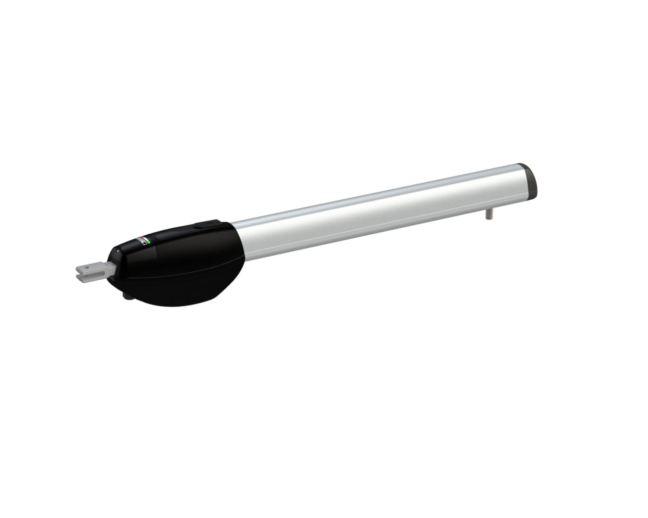 Napęd z silnikiem bezszczotkowym 36 V, do pracy bardzo intensywnej, do bram rozwiernych o max długości skrzydła 4 m z enkoderem cyfrowym, ogranicznikami mechanicznymi, centralą EDGE1/BOX oraz radioodbiornikiem z podwójnym kodem stałym/zmiennym, regulowanym uchwytem do przykręcenia do słupka oraz uchwytem mocowania do skrzydła