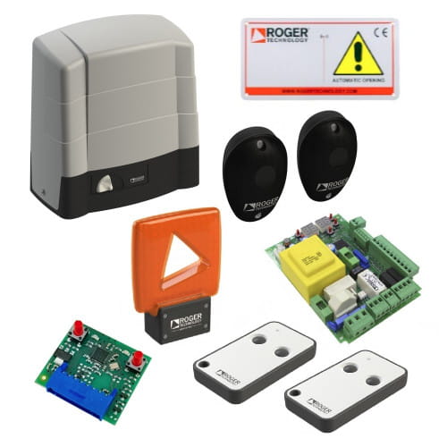 Zestaw Roger Technology KIT G30/1804/F to gotowy do montażu komplet automatyki z akcesoriami przeznaczony do bram przesuwnych o wadze do 1800 kg.