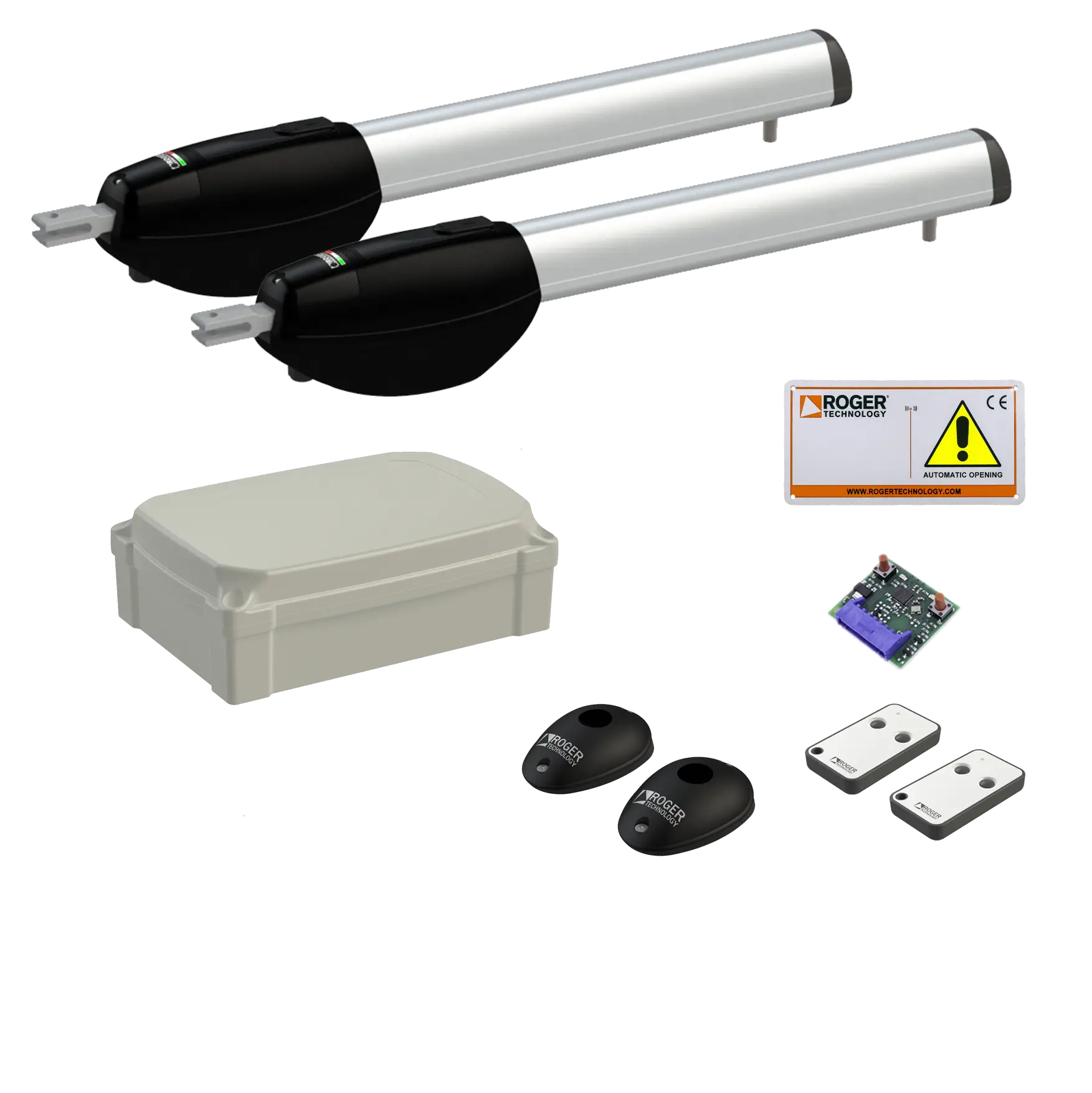 Zestaw Roger Technology KIT BE20/211/HS/L do bram skrzydłowych o długości skrzydła do 2,8 m zawiera: